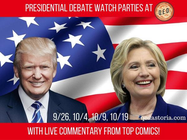 Join us for what is sure to be a hilarious viewing of the Presidential Debate here at QED. We will be screening the event “Mystery Science Theater 3000” style as comedians/ political commentators add their two cents over a microphone during the debate.