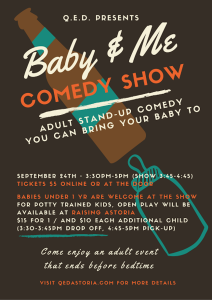 Join nationally touring stand-up comedian and Astoria mom Sally Brooks as she hosts an afternoon of adult comedy for parents and babies (think Cry Baby Cinema meets live stand-up comedy). (...)