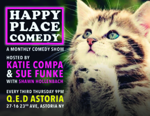 Happy Place Comedy is a carefree comedy show with a unique lineup of established and up-and-coming New York City comedians, hosted by Sue Funke and Katie Compa. It’s the perfect (...)